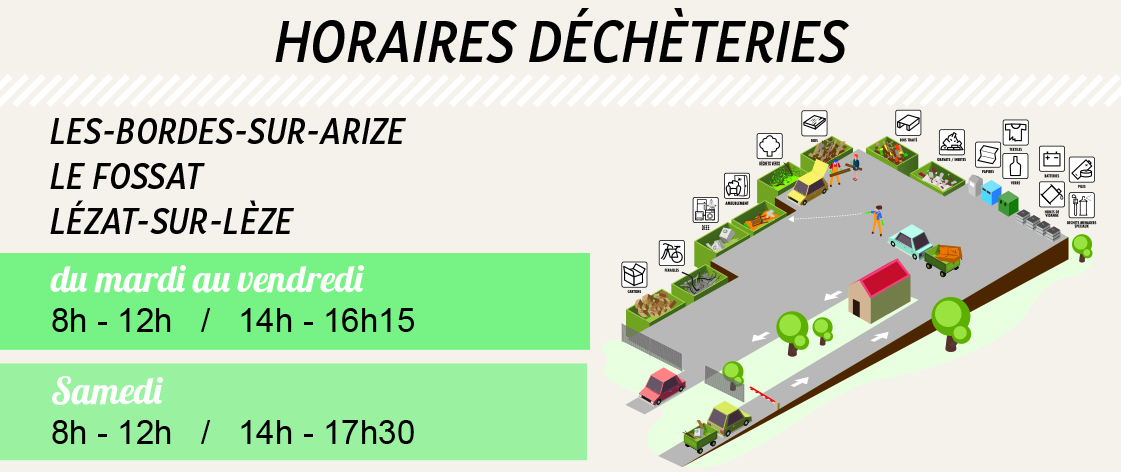 Pendant ces 4.5 mois de travaux, la déchèterie sera fermée aux usagers. Vous êtes invités à déposer vos déchets sur la déchèterie de Le FOSSAT.